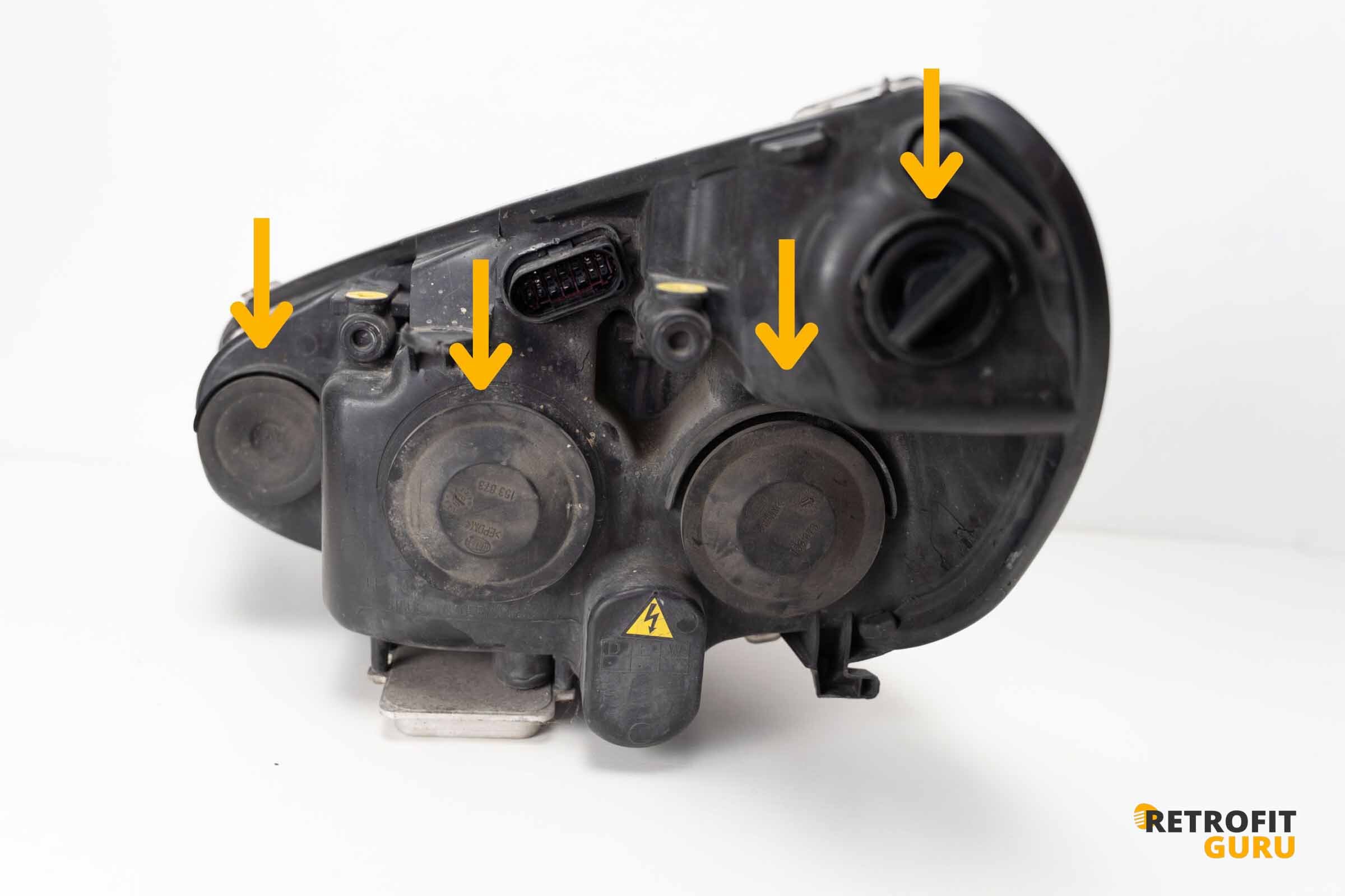 - Odstraňte všechny krytky světlometu včetně žárovek
