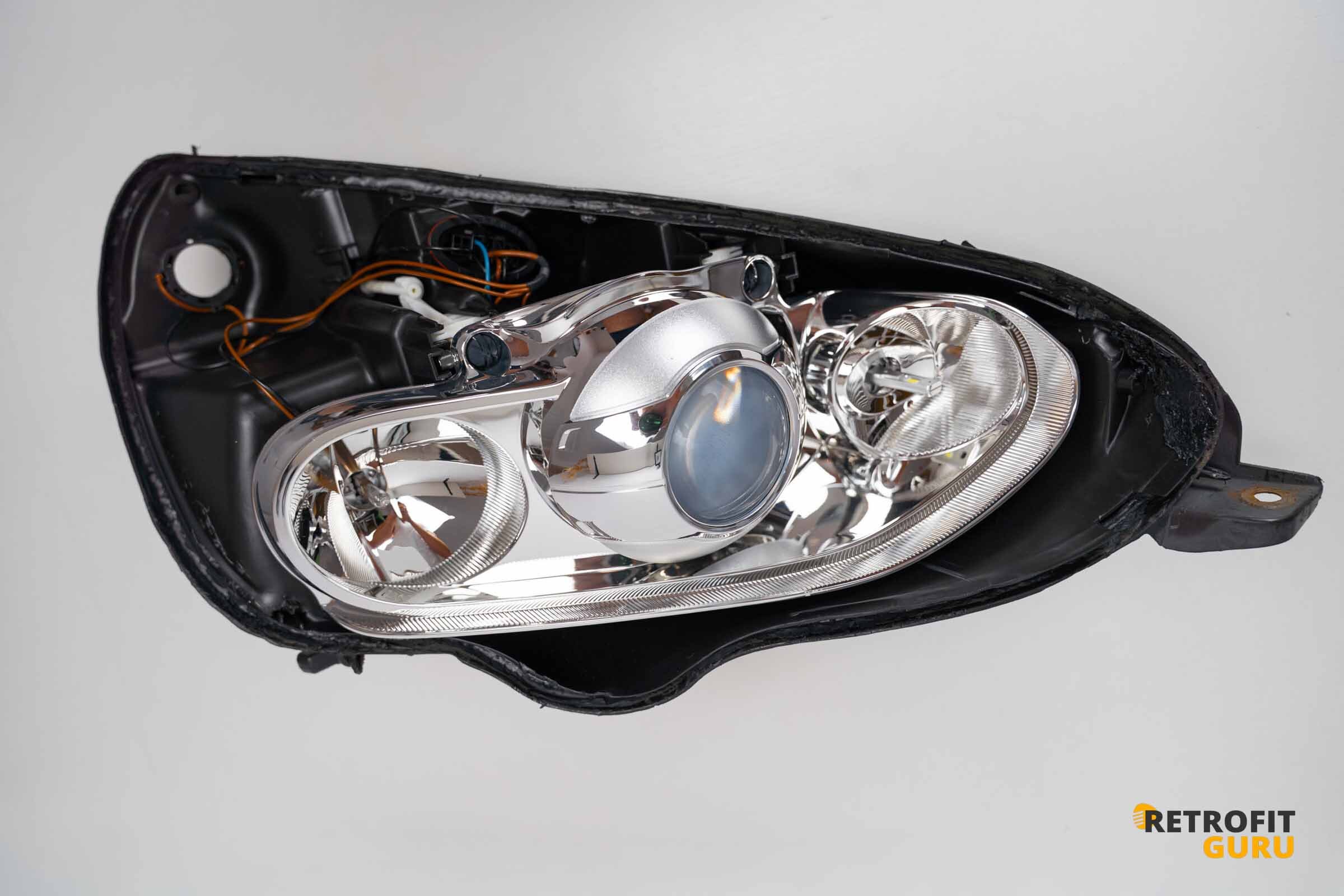 Po kompletním složení světlometu a ověření těsnosti máte hotovo. Světlomet vložte zpět do vozu, připojte všechny konektory a pevně jej usadíte do původních úchytů. Po montáži se musí nastavit sklon světel, protože nové projektory mají odlišnou optiku a výsledná výška lomu může být jiná.