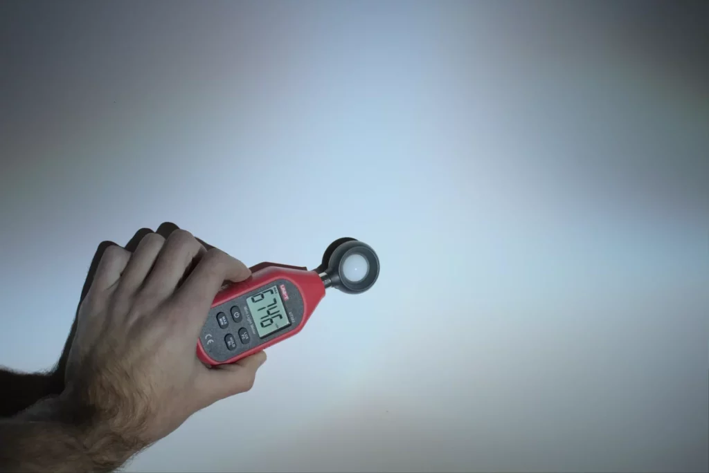 Měření byly prováděny ze stejné vzdálenosti (3.5 m), se stejnou výbojkou a i stejným zdrojem. Zároveň byly foceny i na stejné nastavení foťáku, aby mohl být rozdíl v síle světla patrný z fotky.